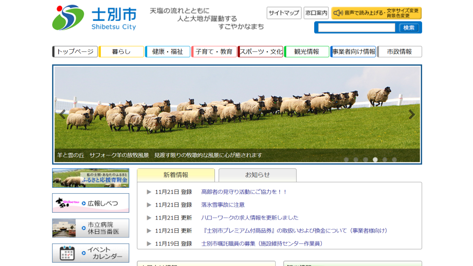 士別市のご案内。暮らしなど市民に向けた情報以外にも観光情報も掲載されていますので士別市に興味のある方、お越しの方は一度ご覧になってください。