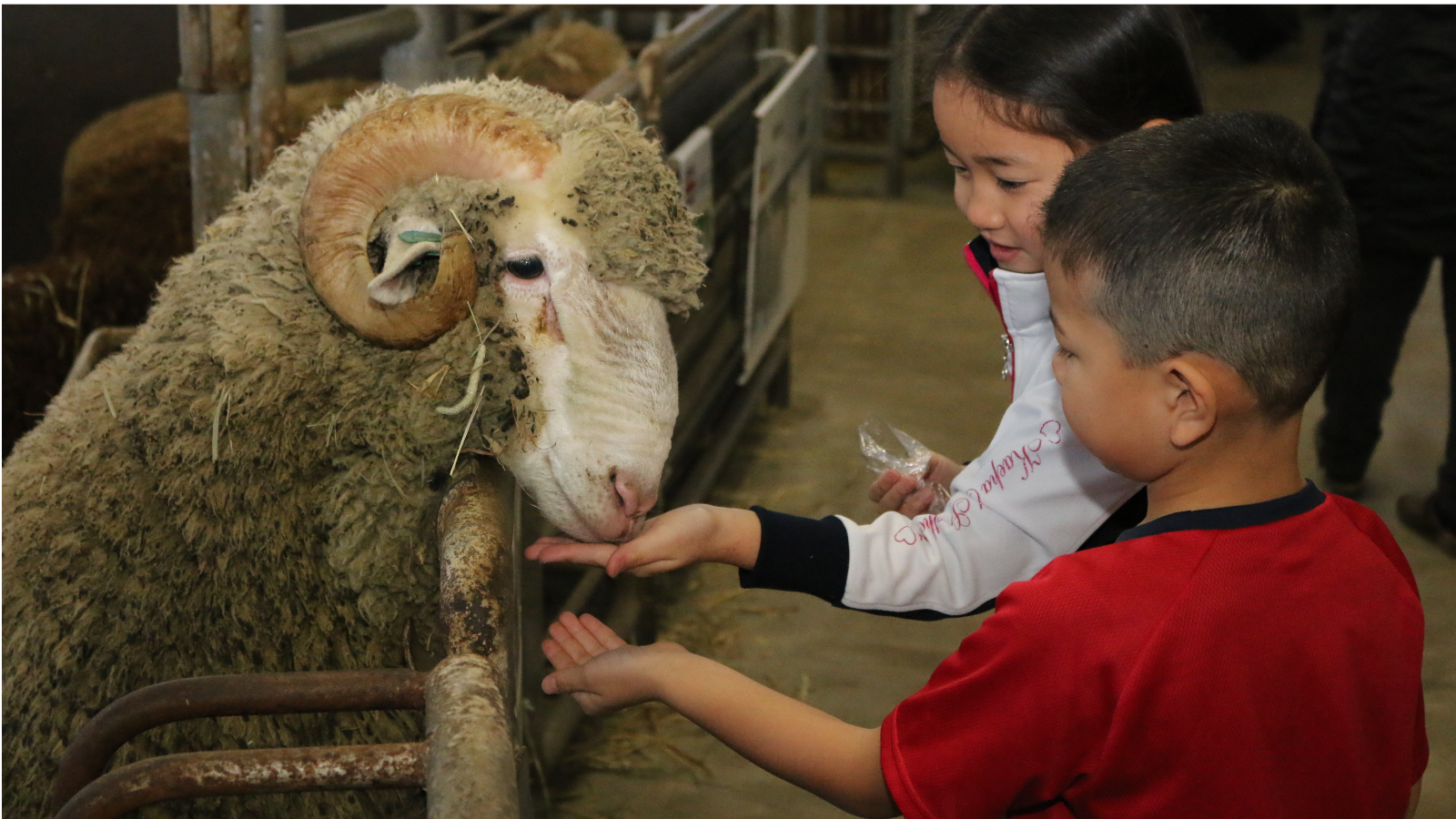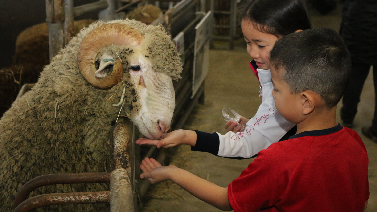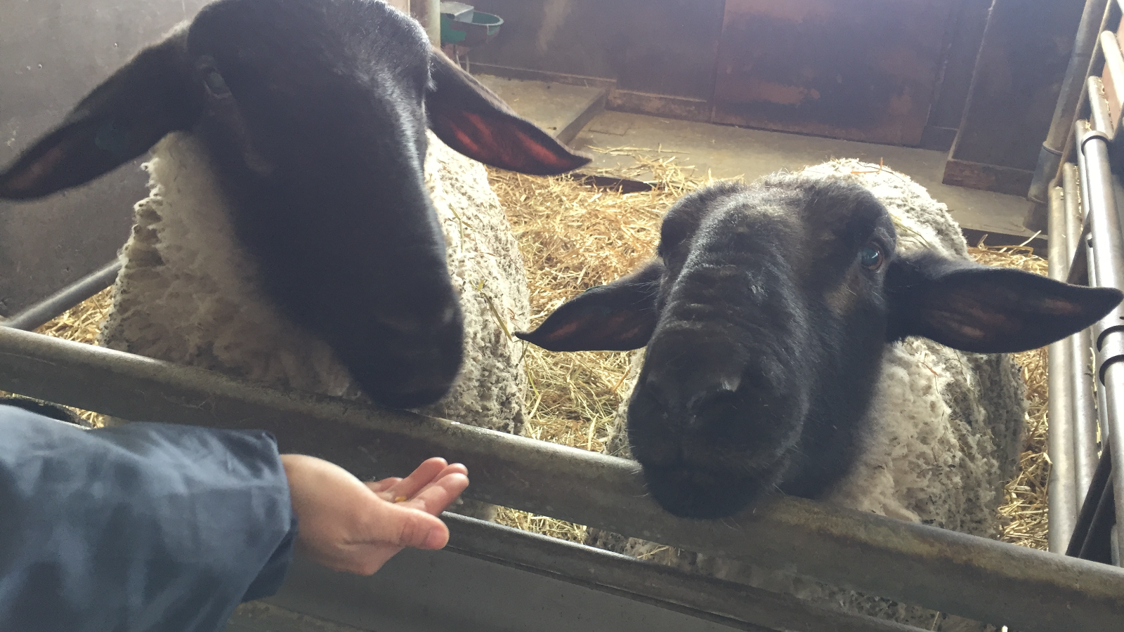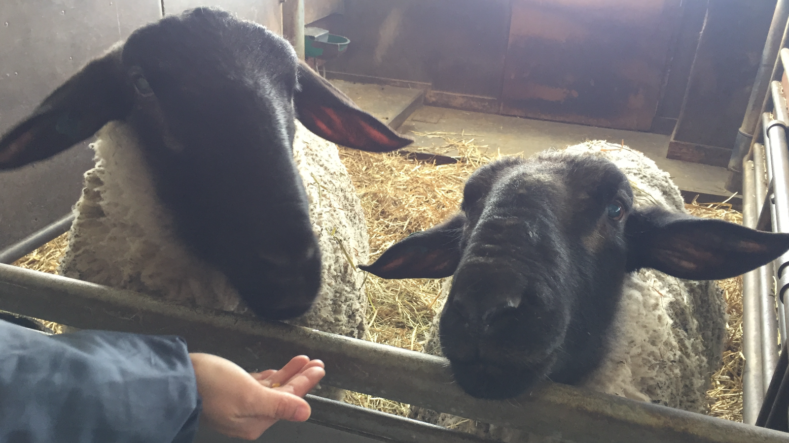普段、放牧場では見られない羊を